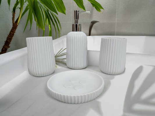 RITZYA 4 Piece White Marble Design Complete Bath Set