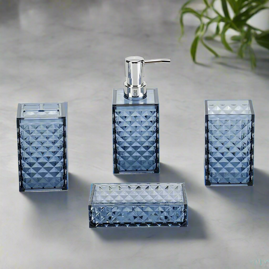 RITZYA 4 Piece Glass Design Blue Bath Set