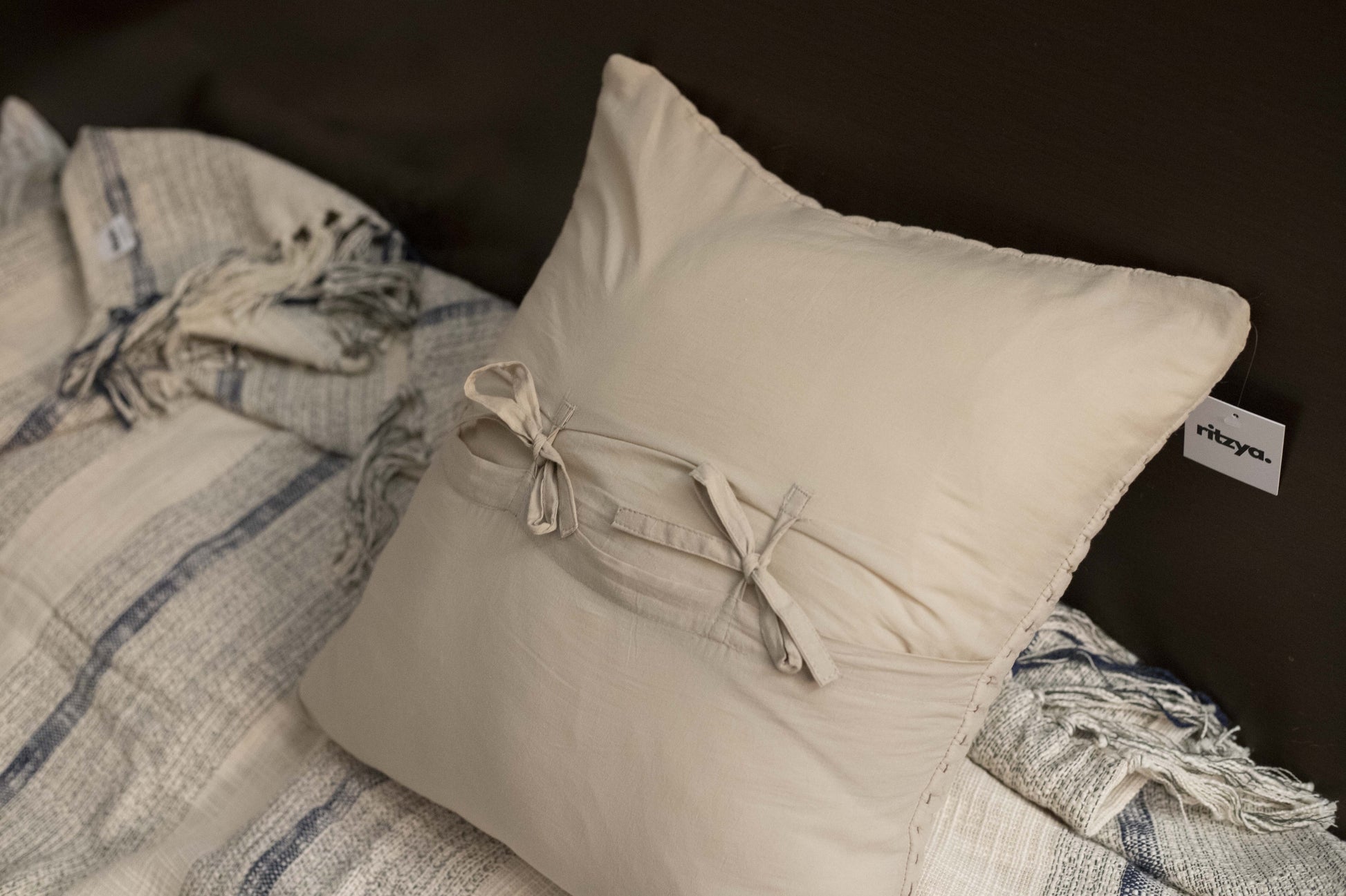Our covers are crafted from premium cotton, linen blends, and textured fabrics with artisanal details like kantha stitching and pleating.